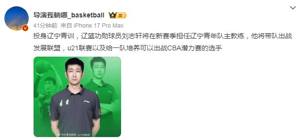 導演我躺哪_basketball報道表示:“投身遼寧青訓,遼籃功勛球員劉志軒將在新賽季擔任遼寧青年隊主教練,他將帶隊出戰發(fā)展聯(lián)盟、U21聯(lián)賽,以及給一隊培養可以出戰CBA潛力賽的選手