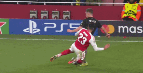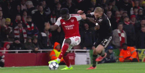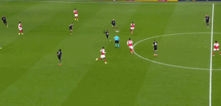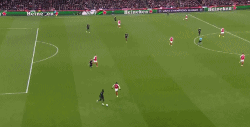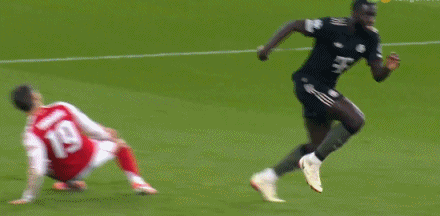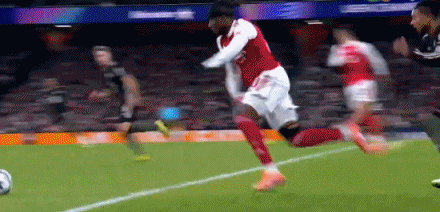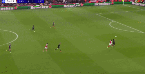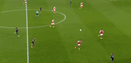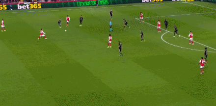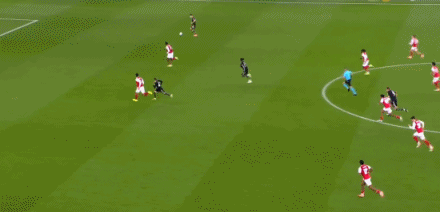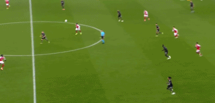 第34分鐘,格納布里左路防守,差點(diǎn)被薩卡身后超車(chē)
