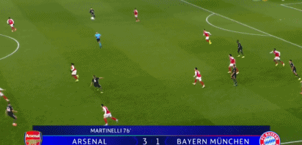 第77分鐘,阿森納反擊,諾伊爾出擊失誤,馬丁內利推空門(mén),阿森納3-1!