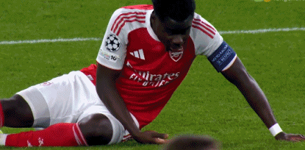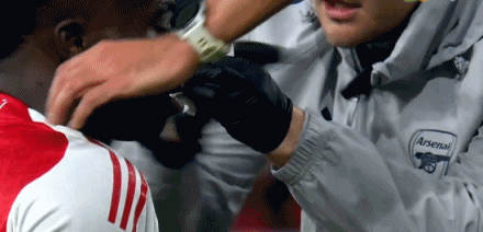 第16分鐘,諾伊爾出擊頭球解圍悶中薩卡面部,導致其鼻子出血